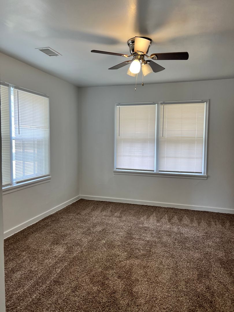Welcome to your new home! This delightful 3-bedroom, 1-bath residence offers a comfortable and inviting living space, perfect for creating lasting memories. Situated on a desirable corner lot with mature trees, this property presents a picturesque setting. Available for rent, this well-maintained home boasts several desirable features including a 2-car garage, storage shed, central heating and air conditioning, carpet, fresh paint, an open kitchen, and a charming front porch.