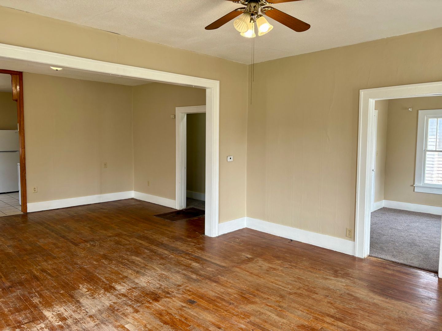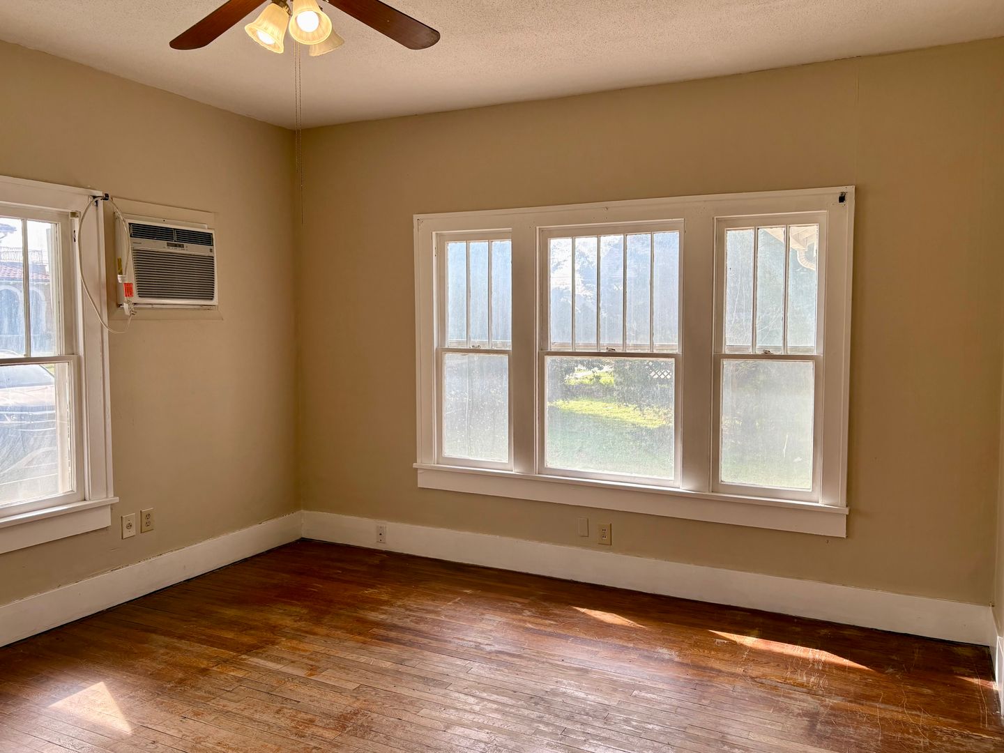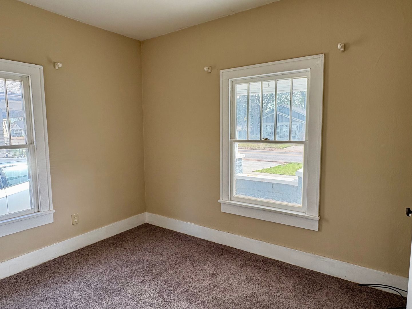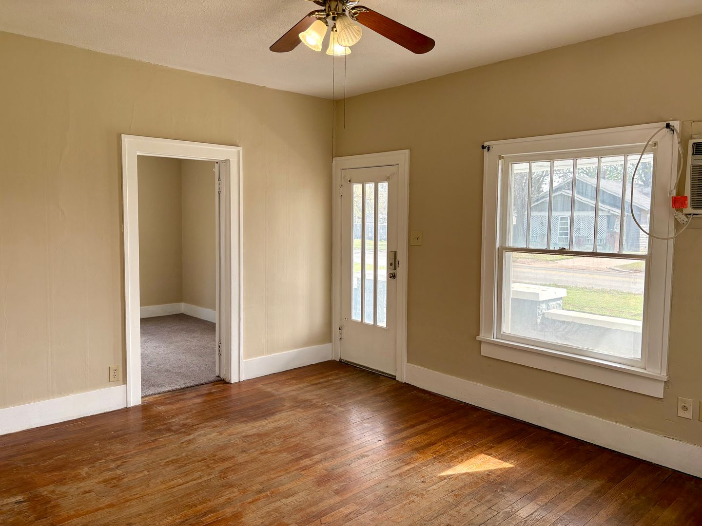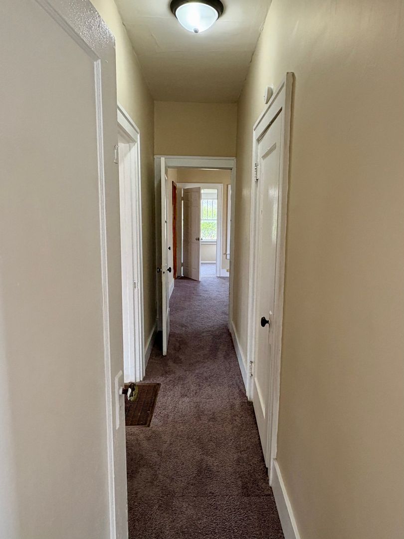 Fresh paint throughout the home. New carpet in all three bedrooms. Freshly remodeled bathroom. Window AC units for efficient cooling and a floor furnace for heating. Washer and dryer hookups for added convenience. Basement for extra storage.